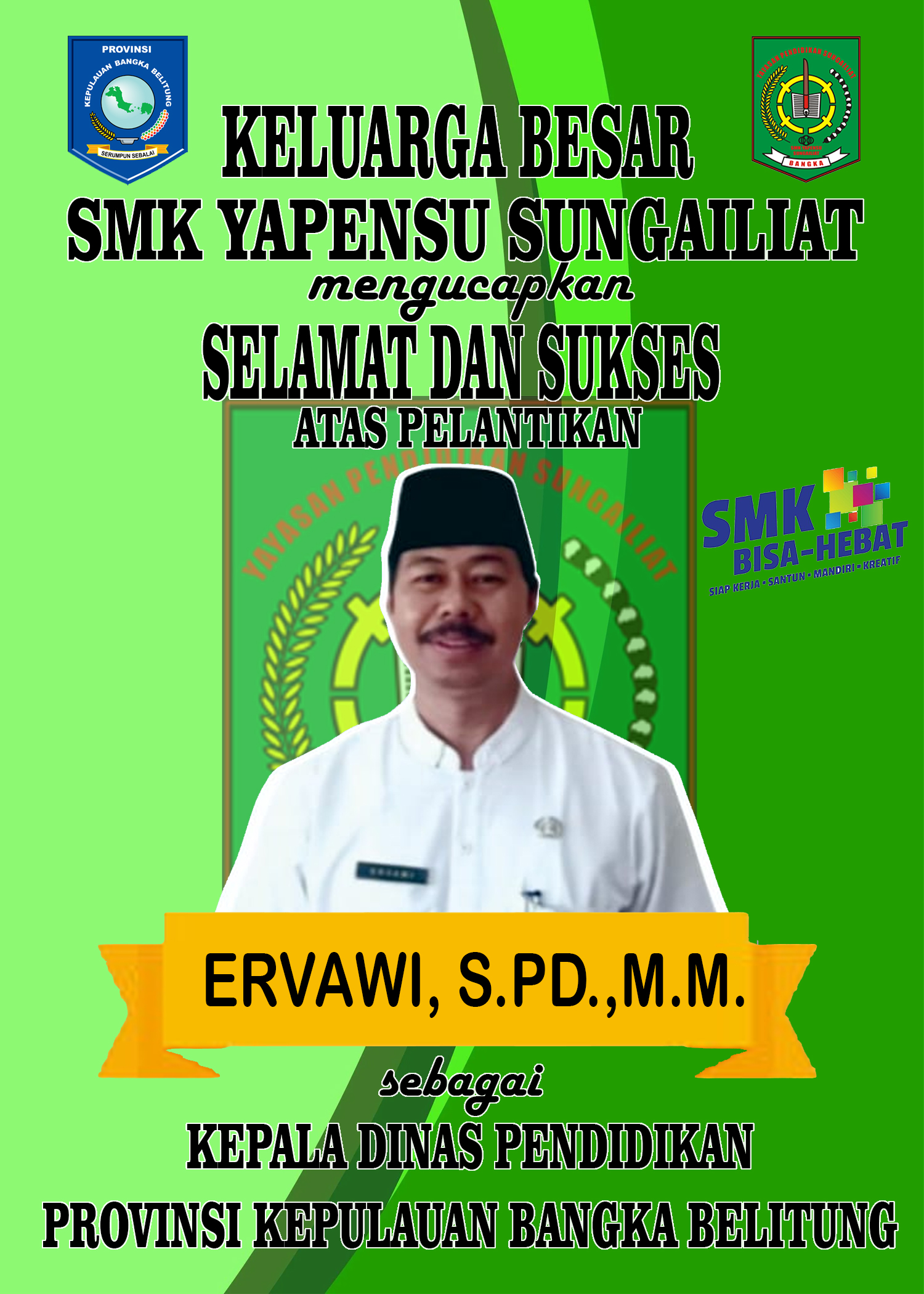 SELAMAT DAN SUKSES UNTUK BAPAK ERVAWI, S.PD.,M.M.